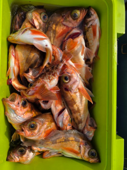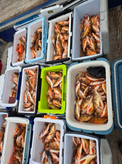새벽 04시 출항 7시경 포인트에 도착 줄을 내리자5마리 열기가 줄을 타고 올라와 넘 반가웠습니다 그동안 열기 조황이 저조해 출조를 미루는 조사님들이많았으나 이제는 미루지